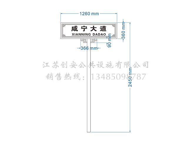 此款路名牌LMP-01采用鍍鋅鋼結構,表面采用氟碳金屬烤漆工藝,視窗面板采用鋼化玻璃,燈箱內置LED燈。具有外形美觀、表面耐腐蝕、抗風性能強、使用壽命長等優點。產品的樣式、尺寸、顏色、材質、配置等均可按需定制。